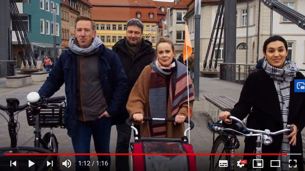 Mobilität in Bamberg braucht grüne Ideen, um aus der Sackgasse zu kommen, meint Markus Schäfer. Rebecca Haas will einen in der Region gut vernetzten ÖPNV mit einem Regionalen Omnibusbahnhof am Bahnhof. Vera Mamerow will sichere (Rad)Wege durch Bamberg für ihre Kinder. Und für eine Neuverteilung des Verkehrs zugunsten von Rad-, Fuß- und öffentlichen Nahverkehr setzt sich Christian Hader ein.