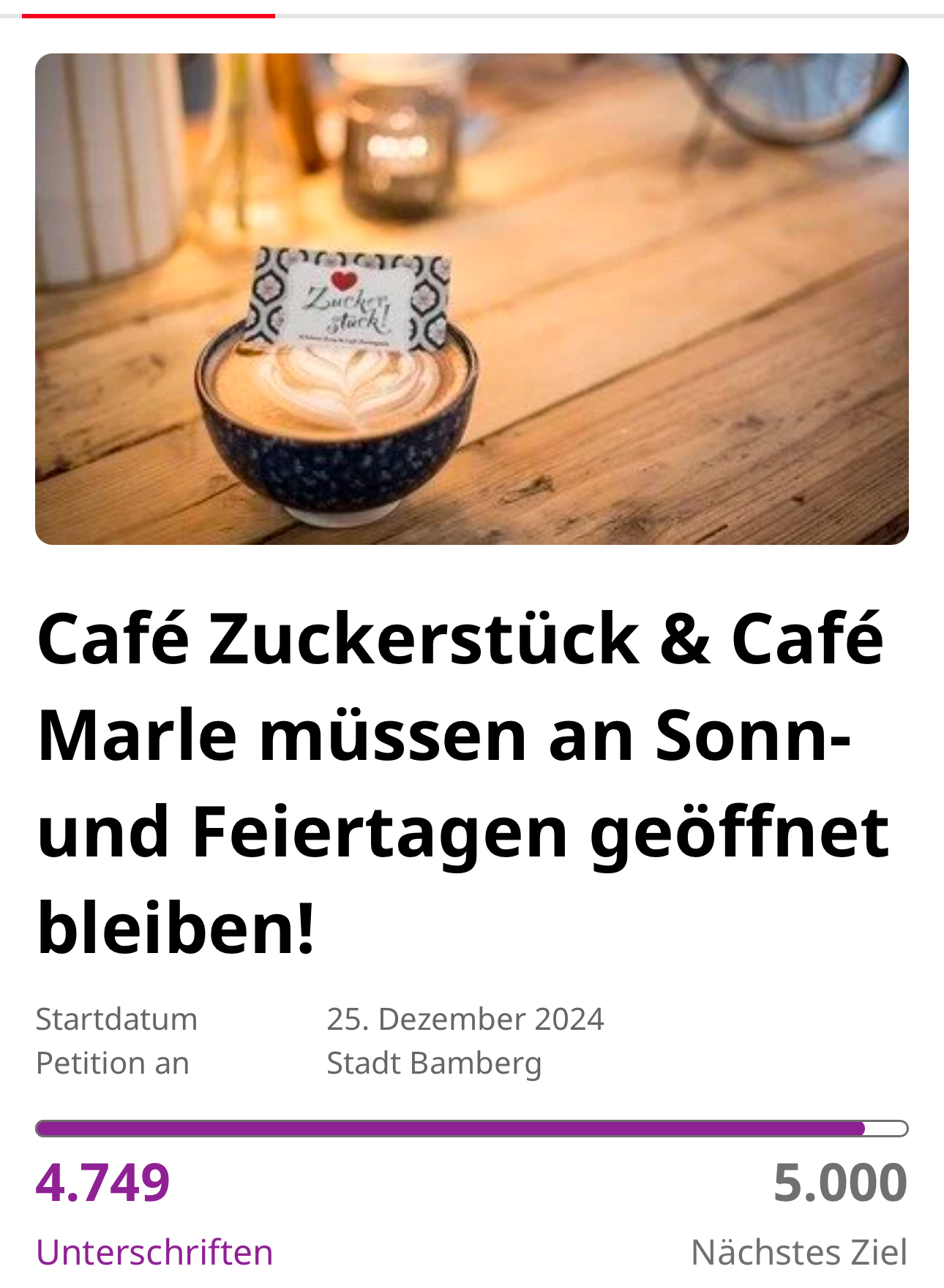 Große Freude herrscht in der grünen Stadtratsfraktion, nachdem heute die Nachricht kam, dass für die Sonn- und Feiertagsöffnung der beiden Cafés „Zuckerstück“ und „Marle“ eine Lösung durch die Stadtverwaltung gefunden wurde.