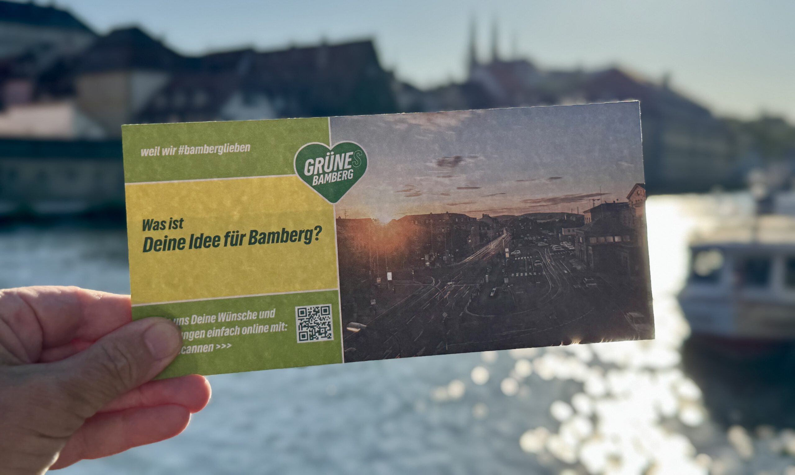 Bambergs Grüne verteilen in den kommenden Wochen mehr als 20.000 Postkarten, auf welchen die Ideen verschriftlicht werden können. Gleichzeitig ist auch eine digitale Beteiligung unter ideen.fuer-bamberg.de möglich.