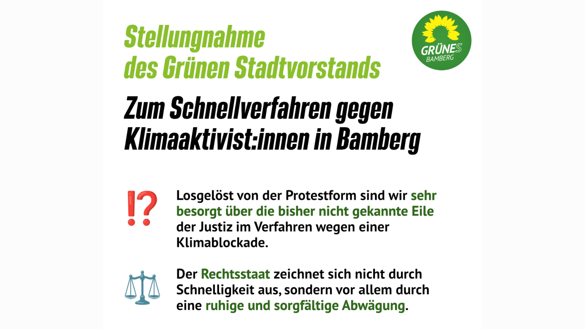 Stellungnahme des Stadtvorstands von Grünes Bamberg zum Verfahren gegen Aktivist:innen der Gruppe „Letzte Generation“ am 6./7. Juli in Bamberg: